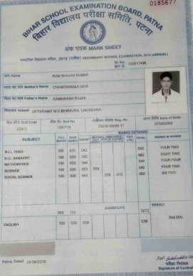 | Exam | Full Marks | Pass Marks | Marks Obtained |