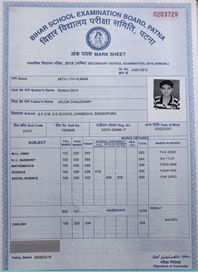 | Exam | Full Marks | Pass Marks | Marks Obtained |