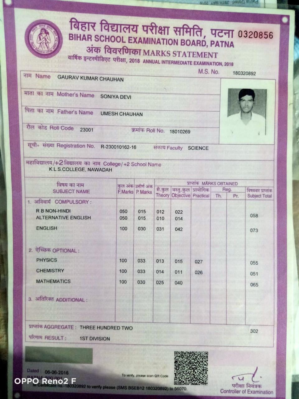 | Exam | Full Marks | Pass Marks | Marks Obtained |