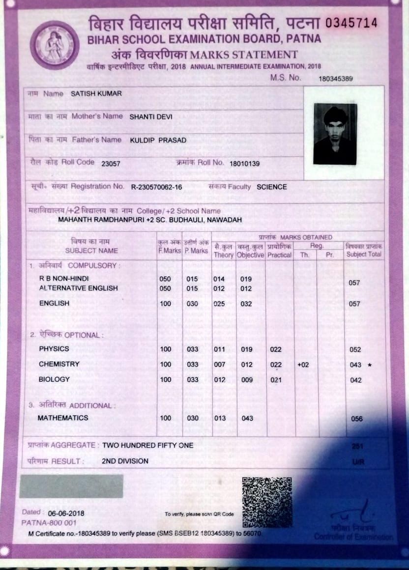 | Exam | Full Marks | Pass Marks | Marks Obtained |