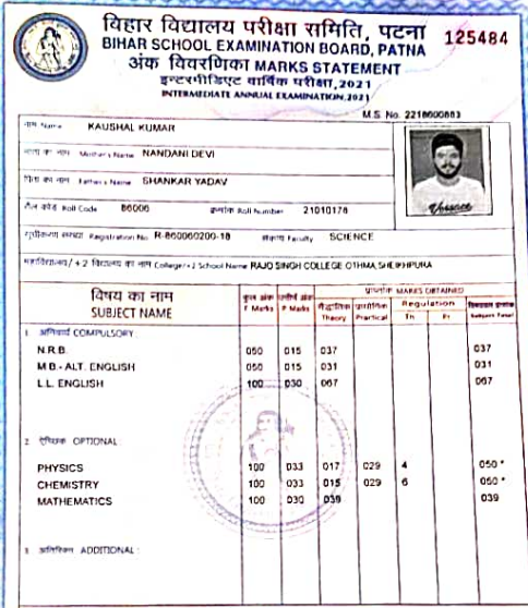 | Exam | Full Marks | Pass Marks | Marks Obtained |