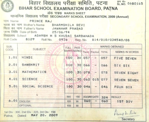 | Exam | Full Marks | Pass Marks | Marks Obtained |