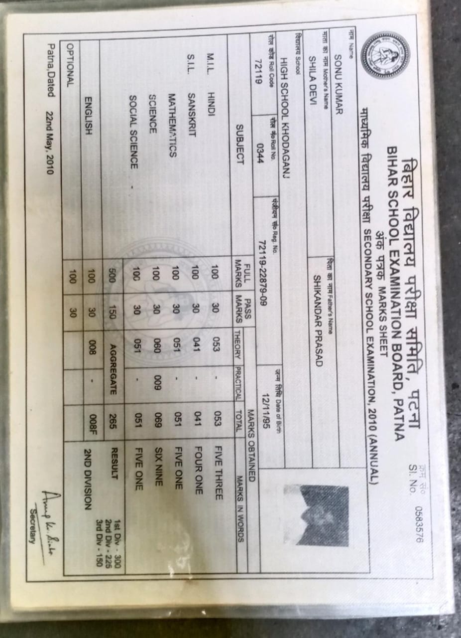 | Exam | Full Marks | Pass Marks | Marks Obtained |