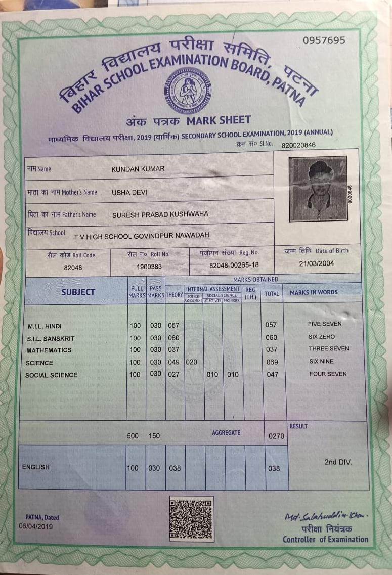 | Exam | Full Marks | Pass Marks | Marks Obtained |