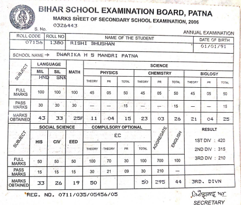 | Exam | Full Marks | Pass Marks | Marks Obtained |