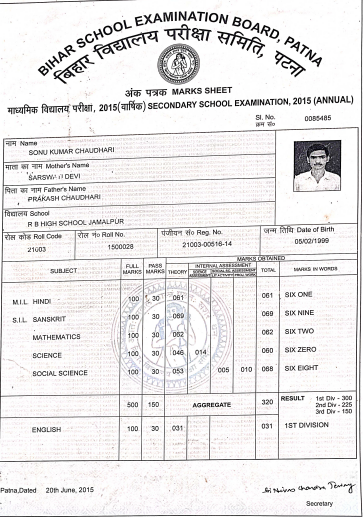 | Exam | Full Marks | Pass Marks | Marks Obtained |