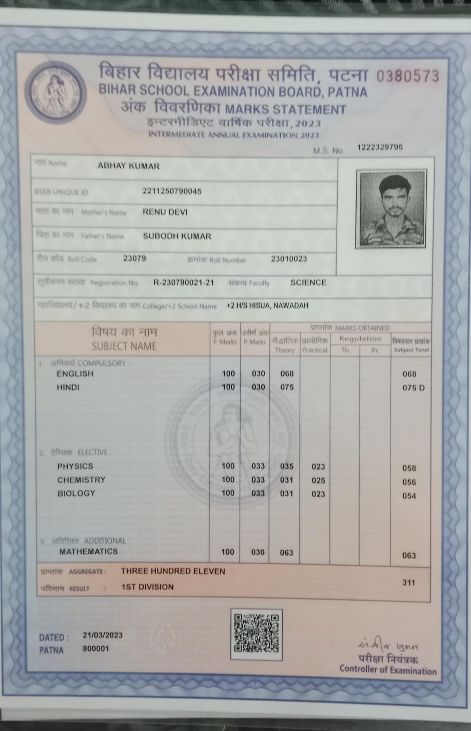 | Exam | Full Marks | Pass Marks | Marks Obtained |