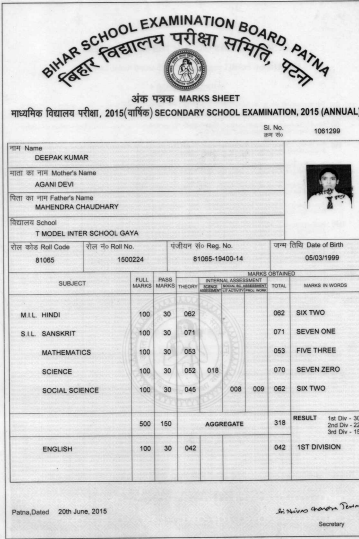 | Exam | Full Marks | Pass Marks | Marks Obtained |