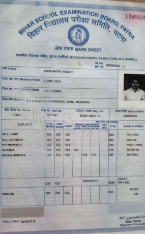 | Exam | Full Marks | Pass Marks | Marks Obtained |