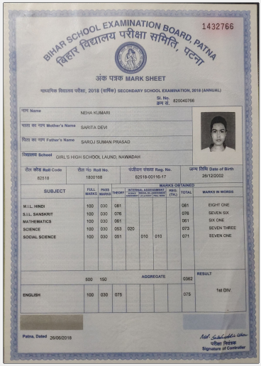 | Exam | Full Marks | Pass Marks | Marks Obtained |