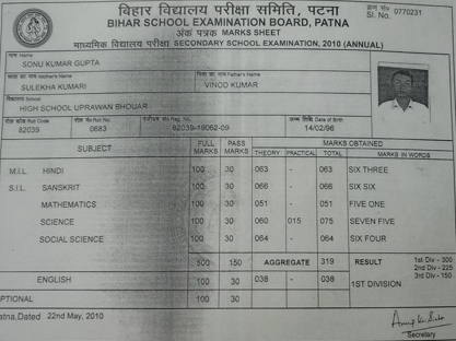 | Exam | Full Marks | Pass Marks | Marks Obtained |