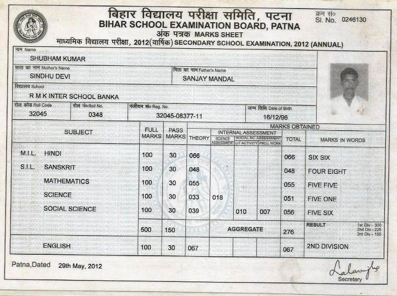| Exam | Full Marks | Pass Marks | Marks Obtained |