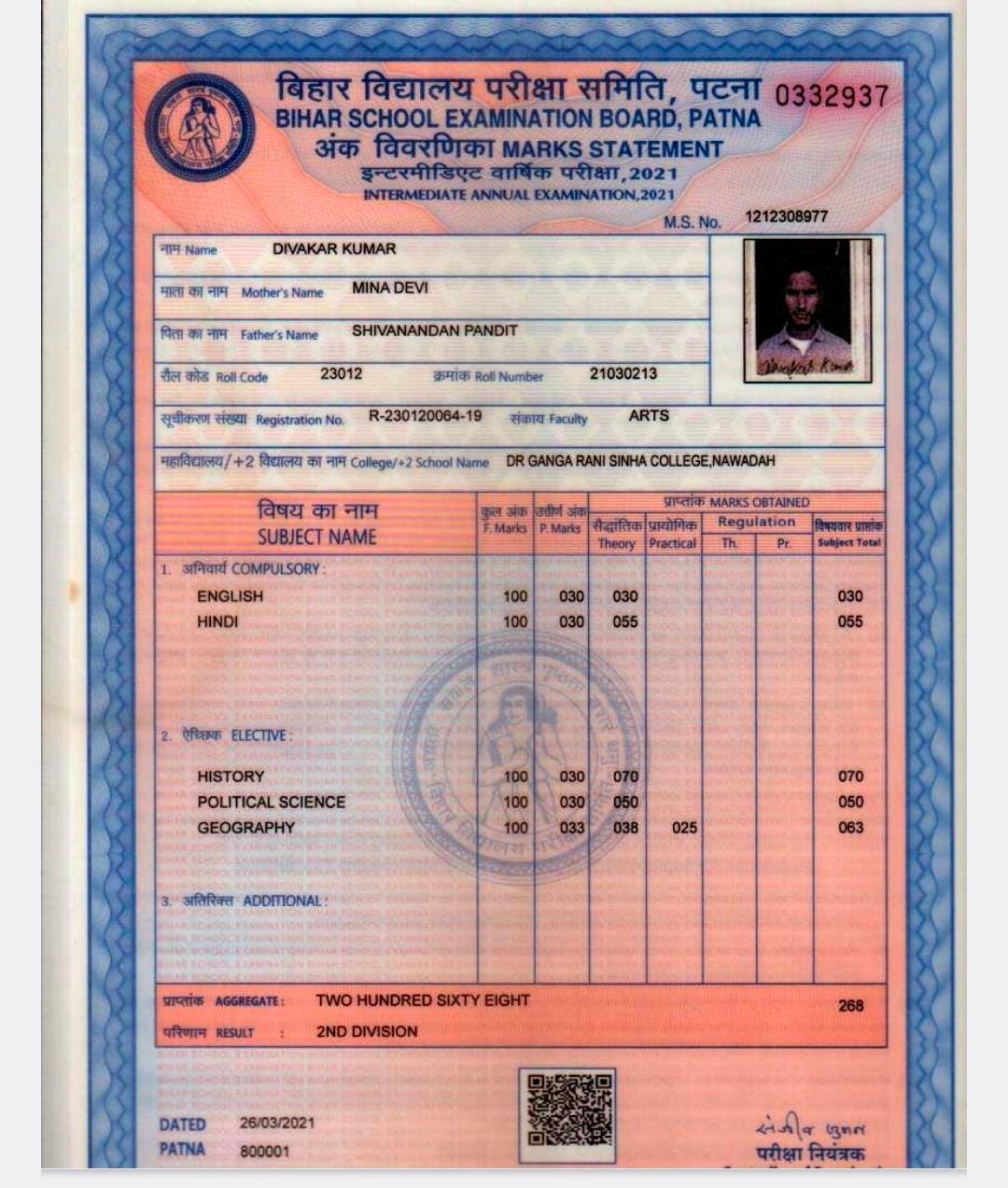 | Exam | Full Marks | Pass Marks | Marks Obtained |