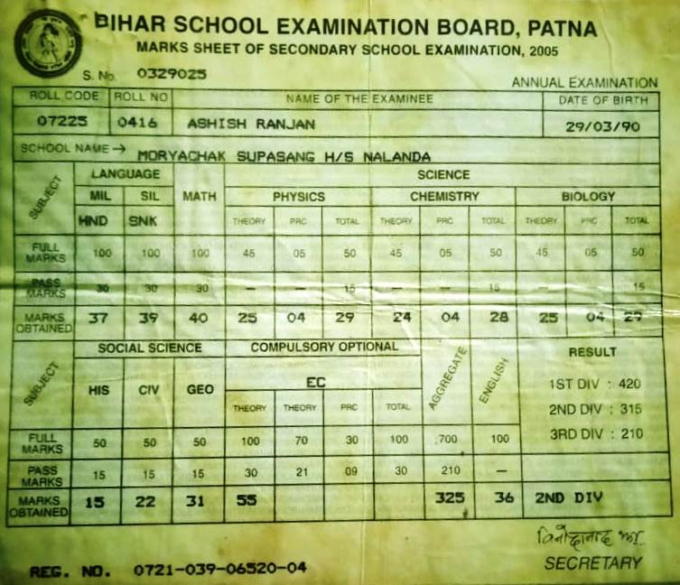 | Exam | Full Marks | Pass Marks | Marks Obtained |