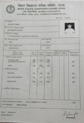 | Exam | Full Marks | Pass Marks | Marks Obtained |