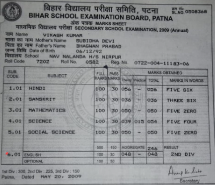| Exam | Full Marks | Pass Marks | Marks Obtained |