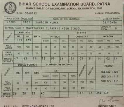 | Exam | Full Marks | Pass Marks | Marks Obtained |