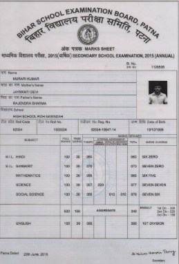 | Exam | Full Marks | Pass Marks | Marks Obtained |