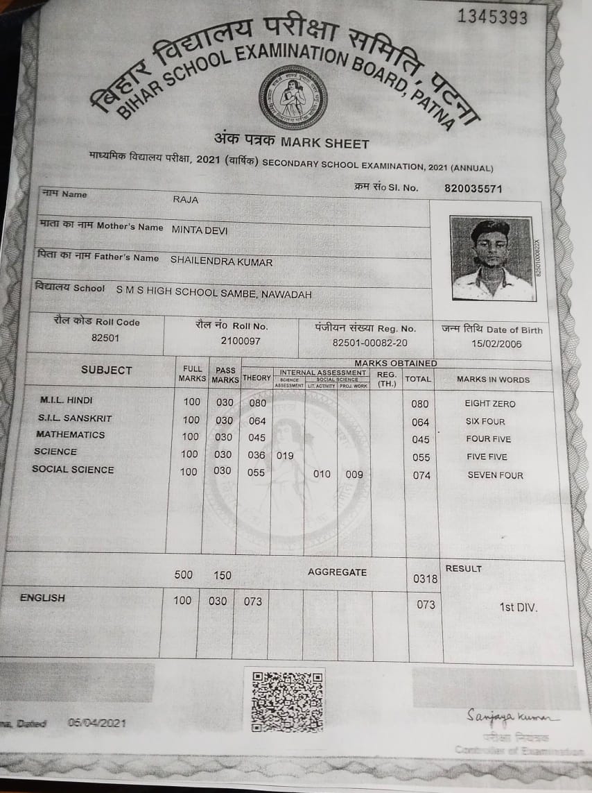 | Exam | Full Marks | Pass Marks | Marks Obtained |