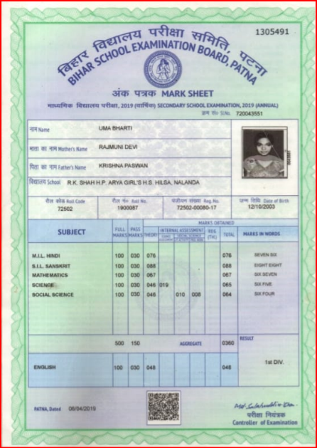 | Exam | Full Marks | Pass Marks | Marks Obtained |