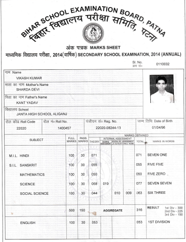 | Exam | Full Marks | Pass Marks | Marks Obtained |