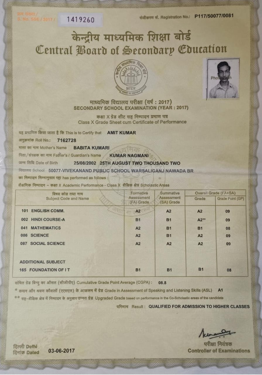 | Exam | Full Marks | Pass Marks | Marks Obtained |