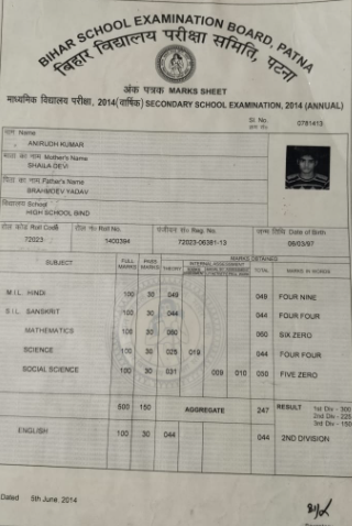 | Exam | Full Marks | Pass Marks | Marks Obtained |