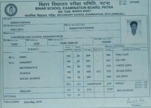 | Exam | Full Marks | Pass Marks | Marks Obtained |