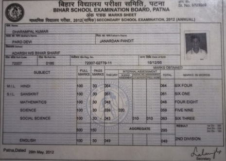 | Exam | Full Marks | Pass Marks | Marks Obtained |