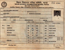 | Exam | Full Marks | Pass Marks | Marks Obtained |