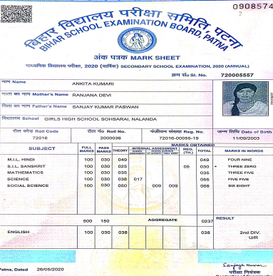 | Exam | Full Marks | Pass Marks | Marks Obtained |