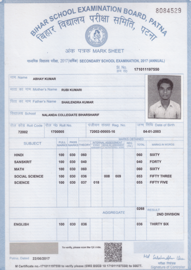 | Exam | Full Marks | Pass Marks | Marks Obtained |