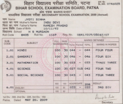 | Exam | Full Marks | Pass Marks | Marks Obtained |