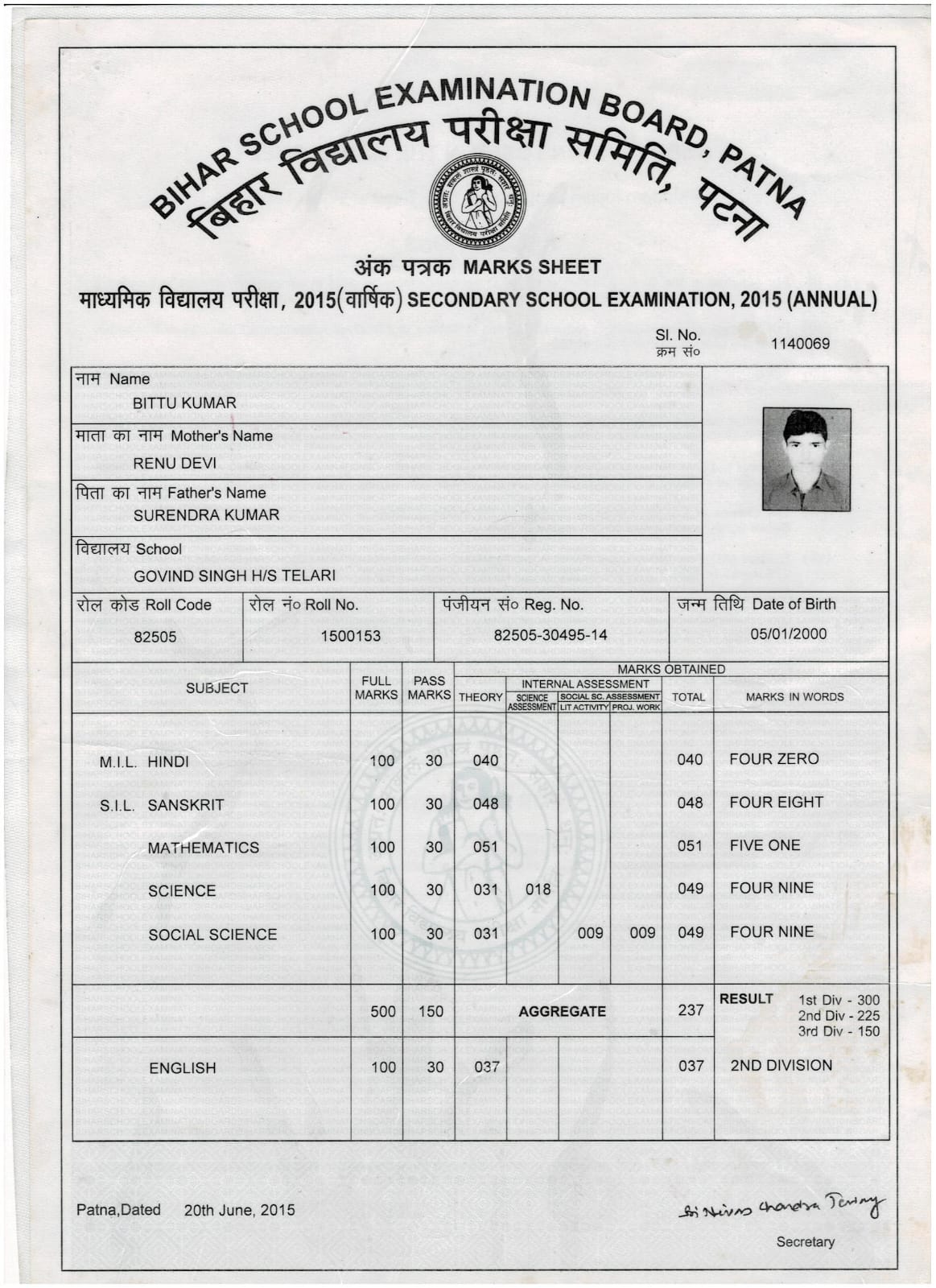 | Exam | Full Marks | Pass Marks | Marks Obtained |