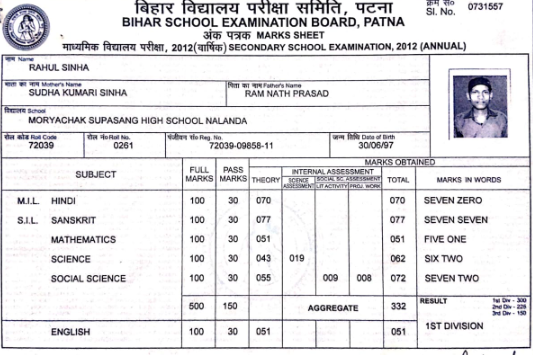 | Exam | Full Marks | Pass Marks | Marks Obtained |