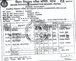 | Exam | Full Marks | Pass Marks | Marks Obtained |