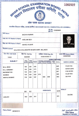 | Exam | Full Marks | Pass Marks | Marks Obtained |