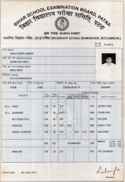 | Exam | Full Marks | Pass Marks | Marks Obtained |