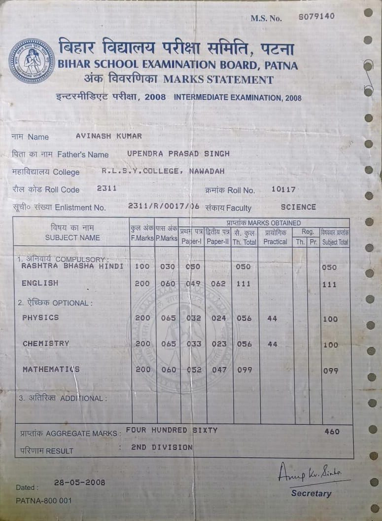 | Exam | Full Marks | Pass Marks | Marks Obtained |