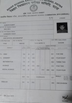 | Exam | Full Marks | Pass Marks | Marks Obtained |
