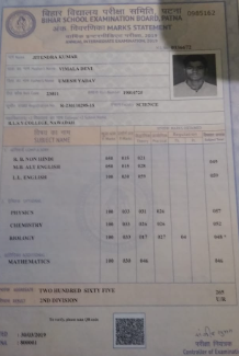 | Exam | Full Marks | Pass Marks | Marks Obtained |