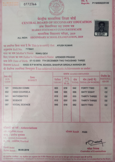 | Exam | Full Marks | Pass Marks | Marks Obtained |