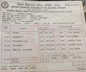 | Exam | Full Marks | Pass Marks | Marks Obtained |
