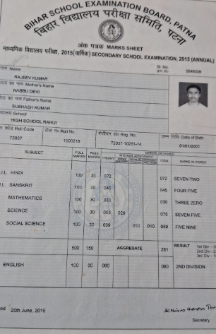 | Exam | Full Marks | Pass Marks | Marks Obtained |