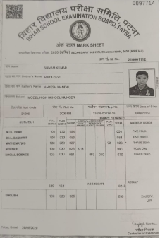 | Exam | Full Marks | Pass Marks | Marks Obtained |