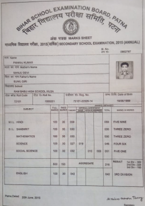 | Exam | Full Marks | Pass Marks | Marks Obtained |
