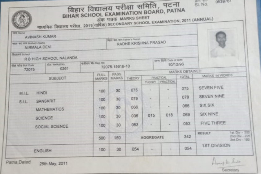 | Exam | Full Marks | Pass Marks | Marks Obtained |