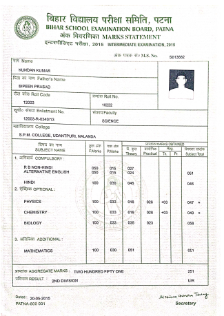 | Exam | Full Marks | Pass Marks | Marks Obtained |