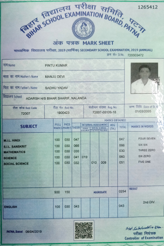 | Exam | Full Marks | Pass Marks | Marks Obtained |