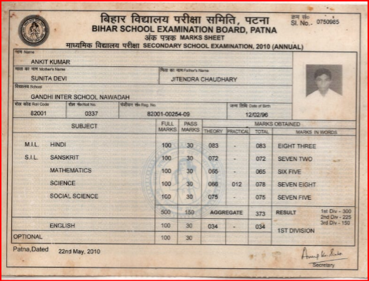 | Exam | Full Marks | Pass Marks | Marks Obtained |